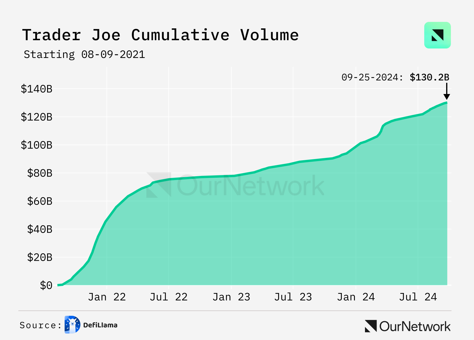 LFJ 达到 1300 亿美元的累计交易量,并突破 500 万美元的 2024 年收益