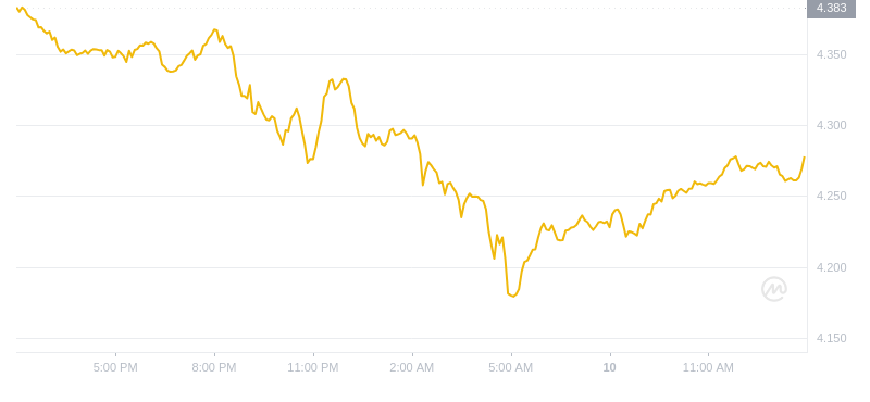截至 2024 年 10 月 10 日 13 时,Cosmos (ATOM) 的价格为 4.26 美元。过去 24 小时的交易量为 80,902,881 美元,流通市值为 16.67 亿美元。