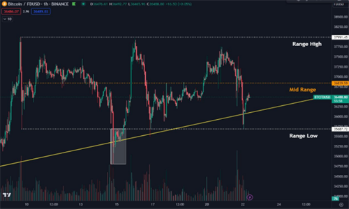 Daan Crypto Trades显示,BTC/USD在两周内一直处于交易区间,尽管在币安事件后跌至35,600美元。