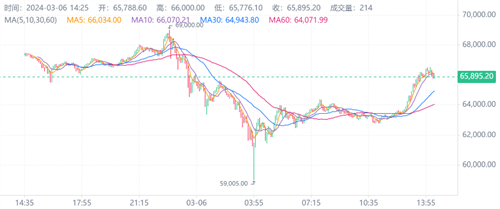在交易日的早些时候,比特币的价格一度冲高到¥49.62万的高点,即大约$70,000美元左右。然而,随着市场参与者的获利回吐和新的买卖力量的平衡,价格逐渐从高点回落。尽管如此,这一价格水平仍然显示了市场对于比特币的强烈兴趣和对其长期价值的认可。