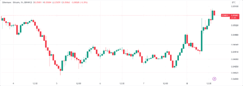 以太币兑美元和比特币的汇率同时上涨,特别是ETH/BTC货币对在4月8日上涨约1.5%,重回关键的0.05 BTC水平之上。这可能预示着短期内资本将在比特币和以太坊之间轮动。