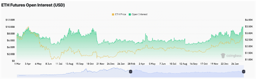此外,以太坊期货市场的未平仓合约(OI)不断增加,达到创纪录的101.9亿美元,这进一步证实了当前ETH价格的波动性。许多市场参与者预计,在以太坊ETF现货获批以及更广泛的加密货币市场可能采取行动的消息传出之际,以太坊价格将继续上涨。