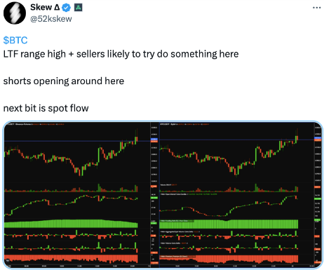 知名交易员Skew在社交媒体平台X上表示,尽管山寨币反弹势头良好,但仍需打破在周一至周二左右创下的周高点趋势。他提到最近的市场模式,并对比特币未来的走势持谨慎态度。