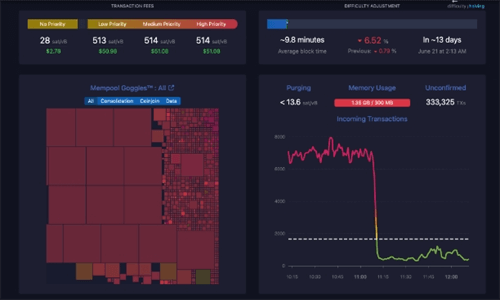 截至美国东部时间6月8日,比特币网络遭遇严重拥堵,未确认交易数量高达332,000笔,导致网络交易费用急剧上升。据最新数据显示,高优先级交易的网络费用已达到514聪,而低优先级交易的费用也攀升至513聪。当天早些时候,交易费用甚至一度冲至每笔约520聪。换算成美元,这相当于每笔交易需要支付50-52美元的费用。不过,随后优先级费用有所回落,降至每笔交易约46美元。