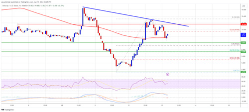 如果UNI价格未能攀升至10.00美元或10.20美元以上,它可能会缓慢下降。第一个主要支撑位在9.50美元附近,或者从8.72美元低点到10.32美元高点向上移动的50%斐波那契回撤位附近。
