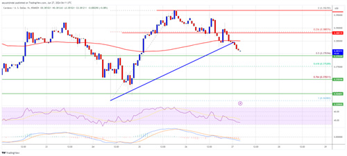 在过去的几天里,卡尔达诺试图像比特币和以太坊一样在0.3650美元上方反弹。然而,澳元未能清除0.40美元的阻力位。金价在0.3967美元处形成高点,随后开始新一轮下跌。