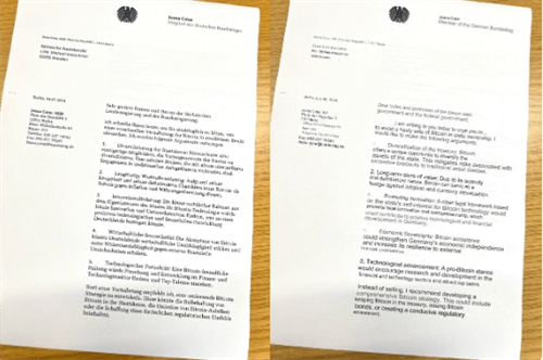 科塔在信中强调,比特币不仅能帮助德国实现国库资产的多元化,还能有效防止通货膨胀和货币贬值,同时促进国家的创新与发展。她指出,进一步抛售比特币对德国而言并不明智,甚至可能产生适得其反的效果。为此,她还邀请了四名德国政客参加10月份举行的“民族国家比特币战略”活动,共同探讨比特币在国家经济中的角色。
