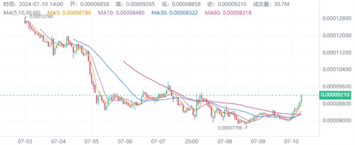 2024年7月7日:昨日老鼠币开盘价为0.00009142美元,随后在小幅波动中,最高触及0.00009468美元,而最低点则出现在0.00008573美元。收盘时价格略有上涨,报0.0000898美元,全天成交额为4466.02万美元,市值保持在8980万美元附近。